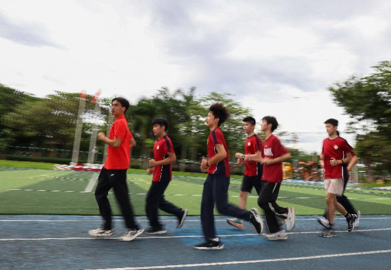 广州市中黄港澳子弟学校学生进行慢跑训练。 新华社记者 刘大伟 摄